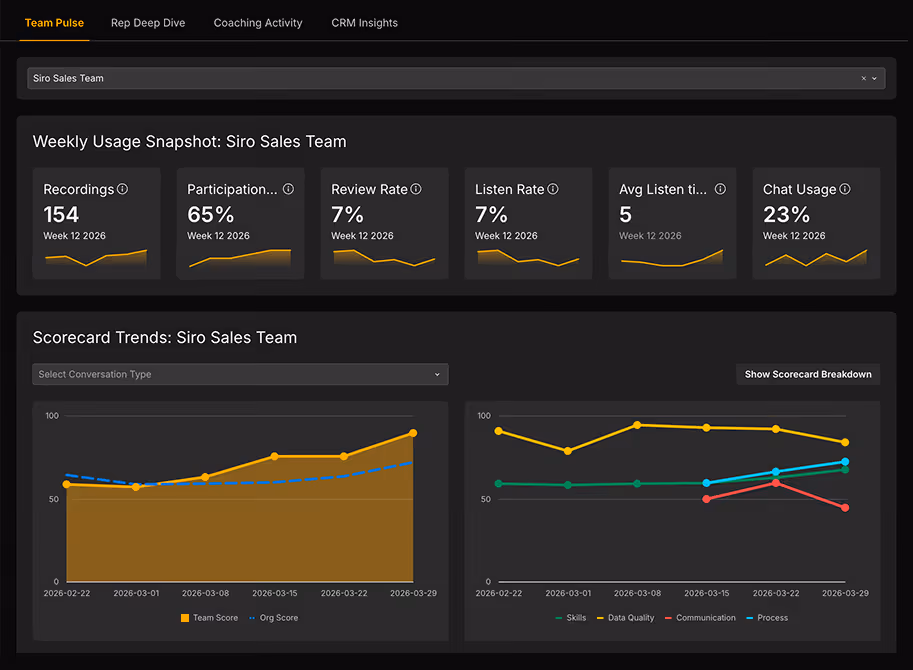 Before, you could see team-level activity. Now you can pull up any individual rep or coach and see exactly how their usage has changed over time — recording frequency, listening habits, coaching activity — without asking anyone for a data pull.